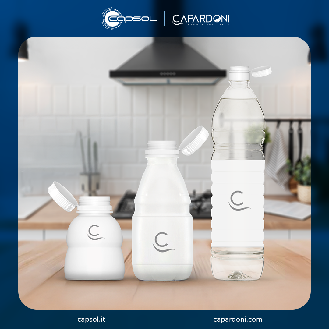 Tappi progettati per rimanere attaccati alla bottiglia, facilitando il processo di riciclo.